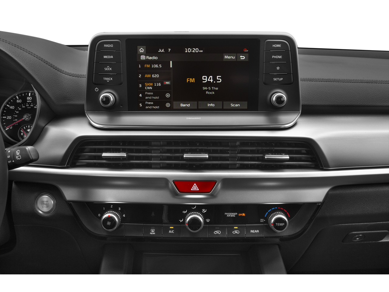 - Radio: AM/FM/MP3/SiriusXM Audio System -inc: UVO link infotainment system, w/smartphone integration for remote commands and remote vehicle status, 6-speaker, support for Android Auto and Apple CarPlay, 8" touch-screen color display, a total of 5 USB charge ports in all rows and Bluetooth® wireless connectivity w/voice recognition (a Bluetooth® enabled cell phone is required to use Bluetooth® wireless technology), Note: Remote's climate feature is not available on LX and S trim levels due to manual HVAC system