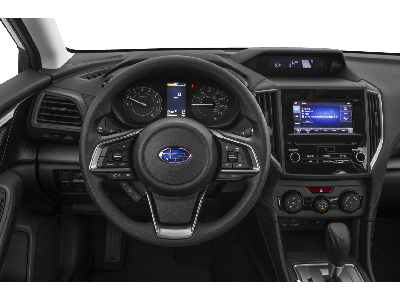 - Radio: Subaru STARLINK 6.5" Multimedia Plus System -inc: AM/FM stereo, HD Radio, single disc CD player w/MP3/WMA/CRR/RW file capability, multi-touch gesture high resolution display screen, voice activated controls, Bluetooth® audio streaming and hands-free phone connectivity, Bluetooth® hands-free SMS text messaging connectivity, iPod control capability, rear-vision camera display, SiriusXM All Access radio (4 months free trial/subscription required after), SiriusXM Travel Link (4 months free trial/subscription required after), smartphone integration: AHA, Android Auto, Apple CarPlay, Pandora, STARLINK cloud applications, 6 speakers, 3.5mm auxiliary input jack, dual USB A input charge ports, roof mounted antenna and audio/satellite connected services
